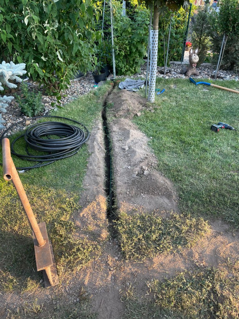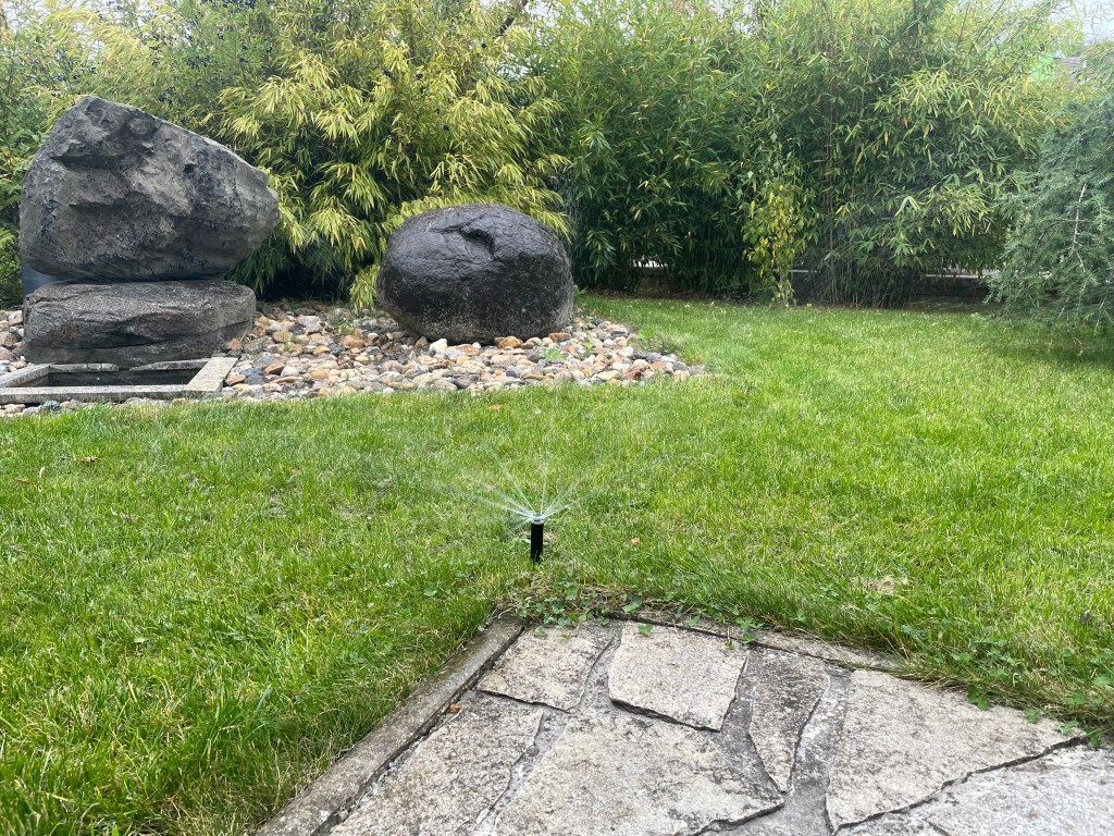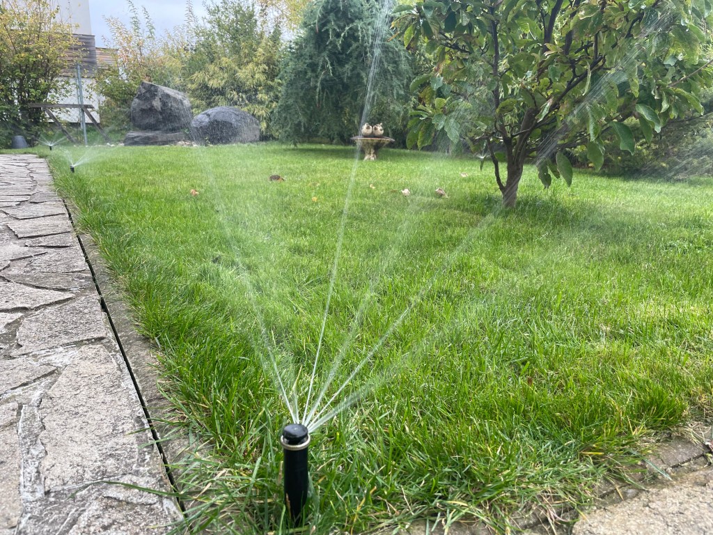 Nově instalovaný závlahový systém zajišťuje pravidelnou a rovnoměrnou péči o trávník díky automatickému provozu. Moderní technologie umožňuje přesné nastavení času a intenzity závlahy.
