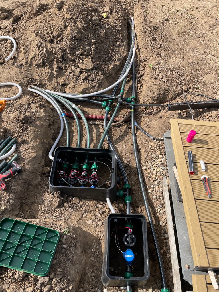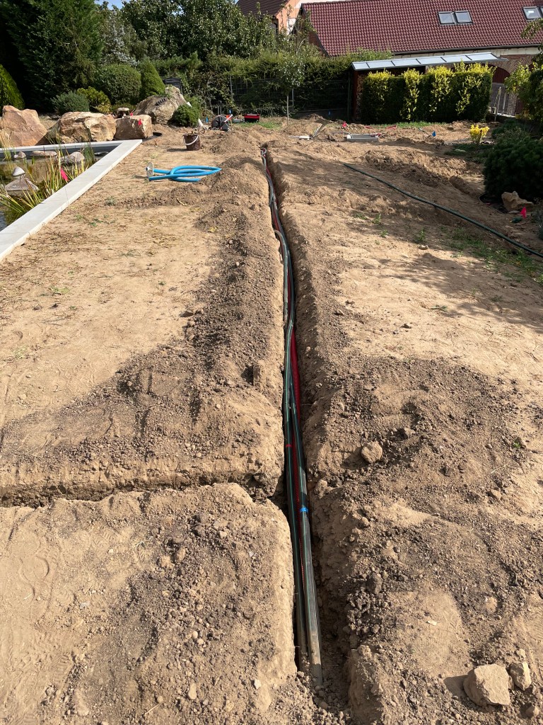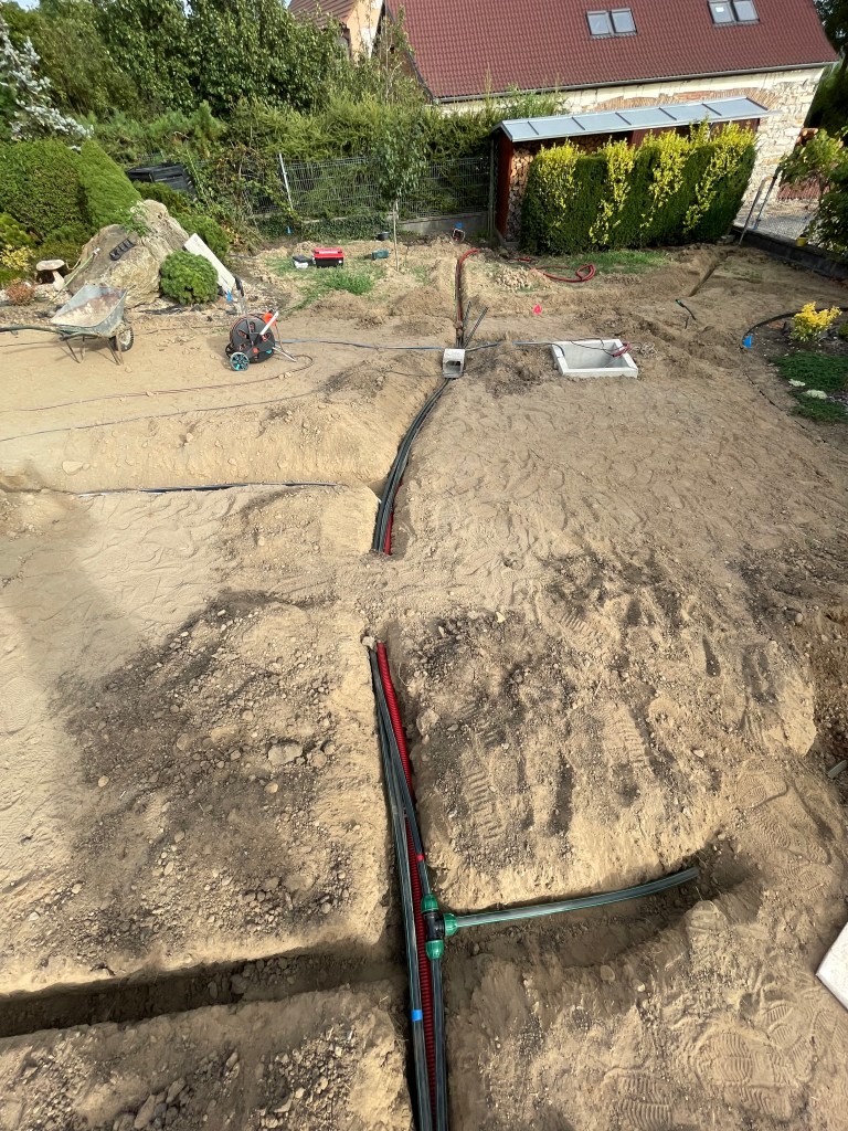První fáze zahrnovala odstranění původní závlahové infrastruktury, která nevyhovovala aktuálnímu stavu zahrady. Po analýze stavu původního systému jsme navrhli plán pro obnovu a optimalizaci. Cílem bylo zvýšit efektivitu závlahy, minimalizovat ztráty vody a výrazně zjednodušit údržbu.