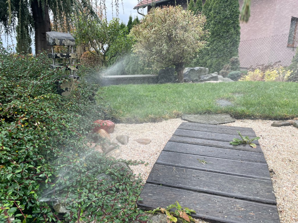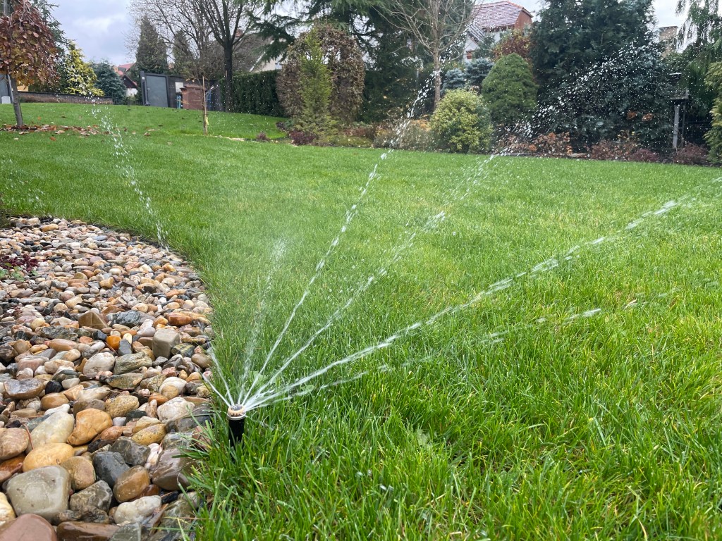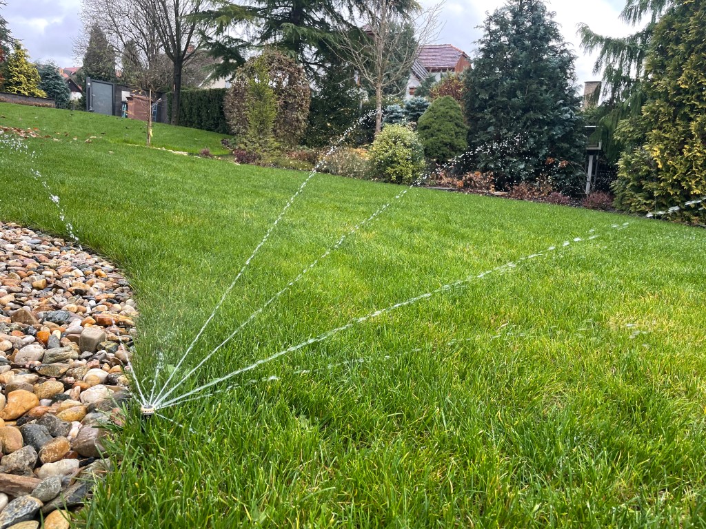 Celý systém závlahy byl napojen na místní vodovodní řad, což zajistilo stabilní přísun vody pro trávník i během suchých období.